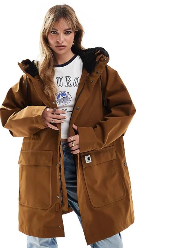 Carhartt WIP Clarton Parka Jacket In Tan For Women Brown