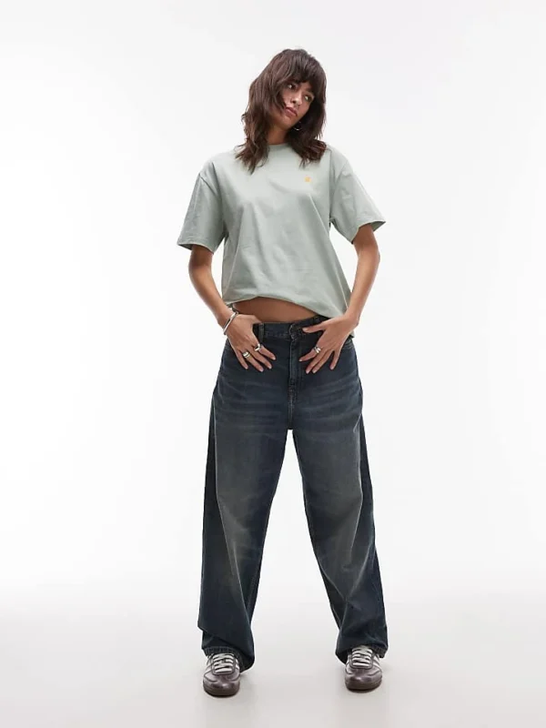 Carhartt WIP Simple Loose Fit Jeans In Blue Stone Wash For Women